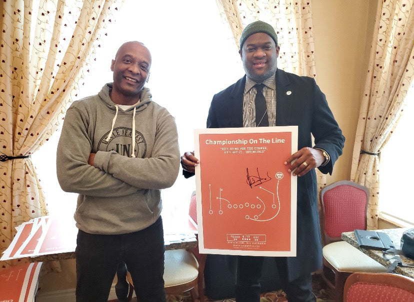 Facing a fourth and five from the 9 yard line, Vince Young received the shotgun snap scanned the field but found his receivers covered. Young took off toward the right sideline and won the footrace to the end zone. That score, Young’s third rushing touchdown of the game, gave the Longhorns a one-point lead with 19 seconds left to play. Texas defeated USC to become the BCS National Champion.