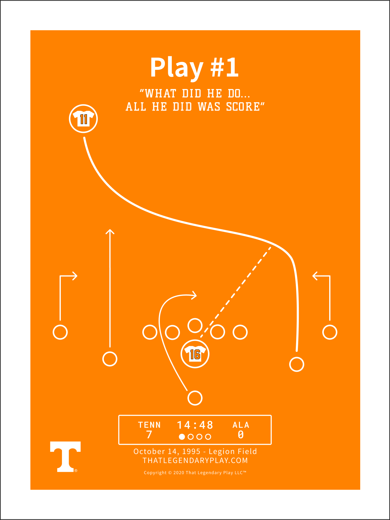Peyton Manning threw for three touchdowns and ran for another, helping Tennessee hand Alabama its worst home loss in 38 years with a 41-14 lopsided victory. Tennessee scored on Play No. 1 when Manning hit Joey Kent for an 80 yard touchdown and the Vols never looked back.