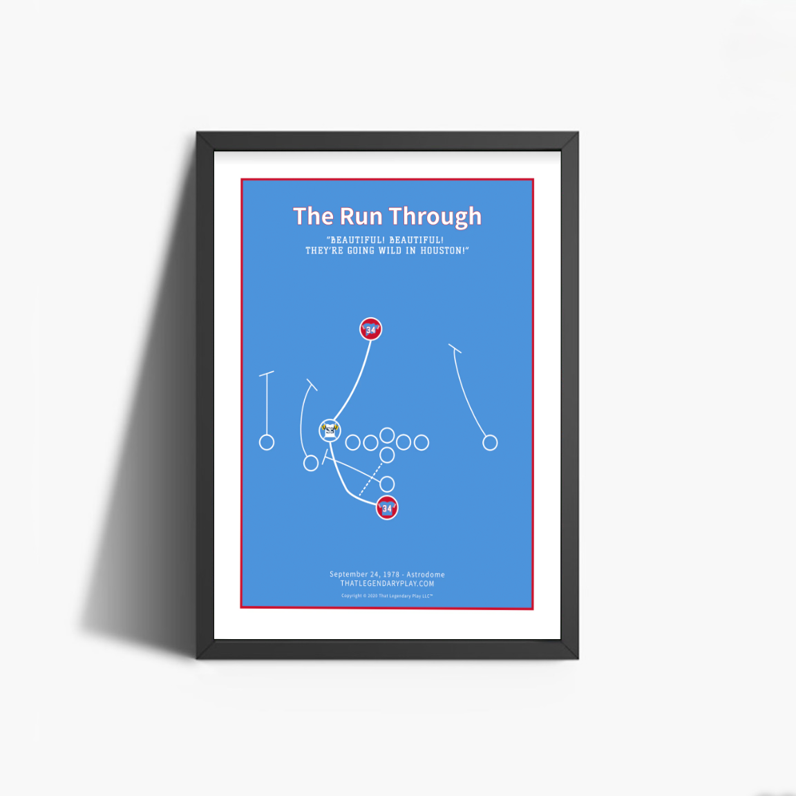 At the Houston Astrodome on September 24, 1978, the Oilers were down 10-3 to the Rams early in the fourth quarter, and had the ball at the Rams 22 on first and 10. Earl Campbell, caught a pitch to the left and quickly eluded a tackler, then skipped over a fallen teammate before coming face to face with Rams linebacker Isiah Robertson. Campbell ran through Robertson, breaking one more tackle before dragging three Rams and a torn jersey to the 6 yard line. This legendary play was part of a standout rookie season and preclude to his Hall of Fame career.
